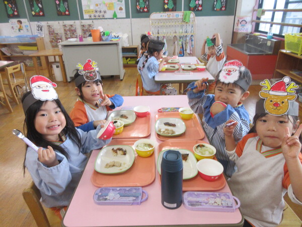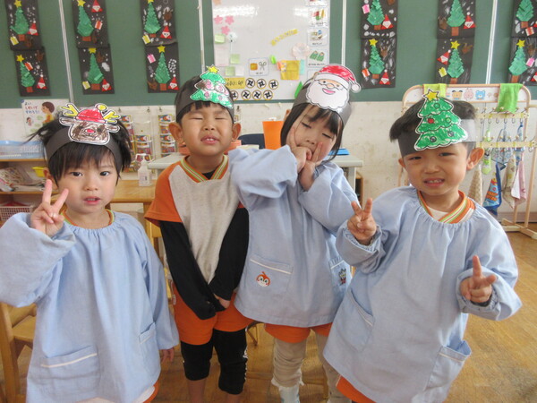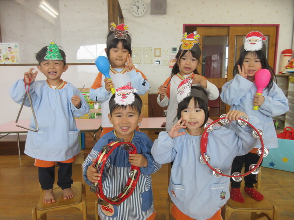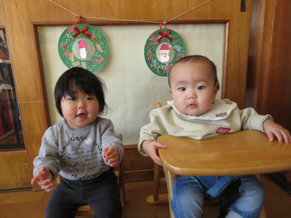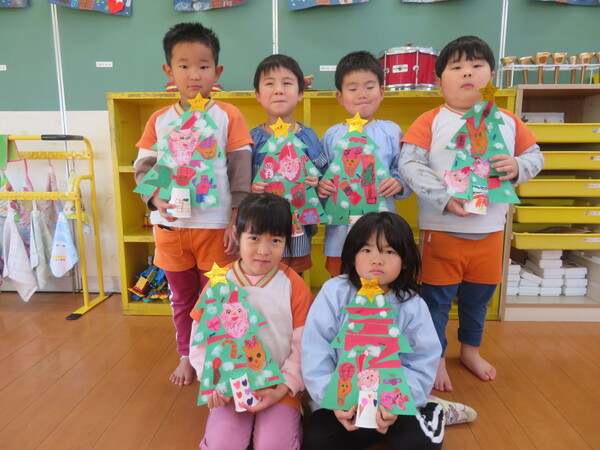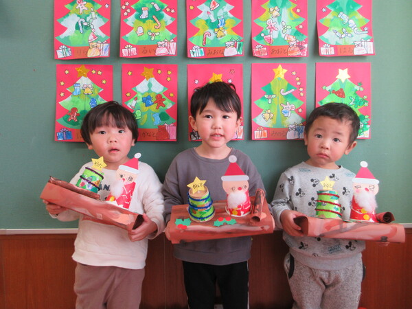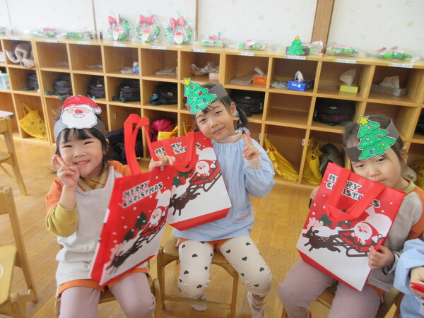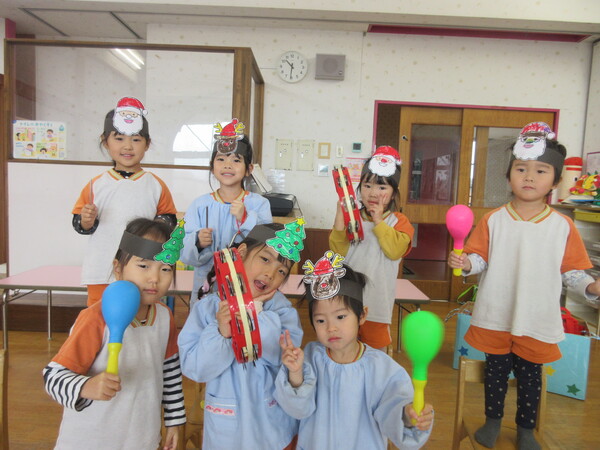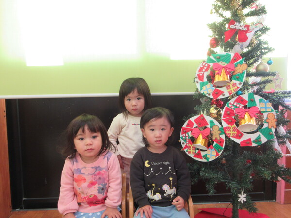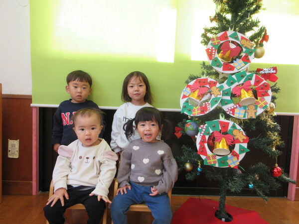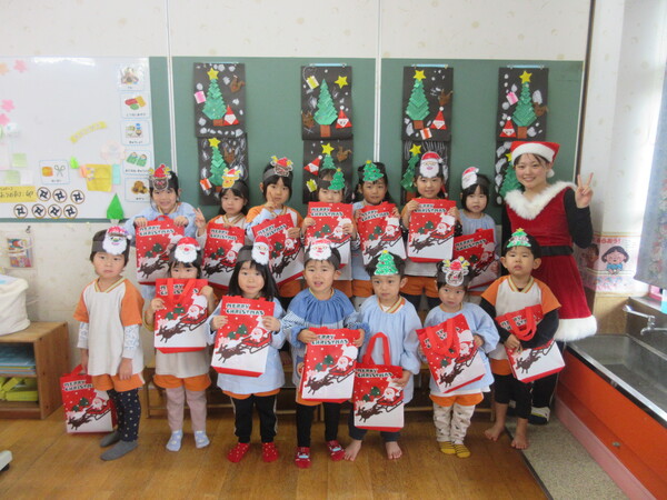 みんなでクリスマスパーティーをしました。クリスマスソングに合わせ、リズム遊びをしたりゲームをして、楽しい時間を過ごしました。サンタさんからのプレゼントも大喜びの子ども達でした‼