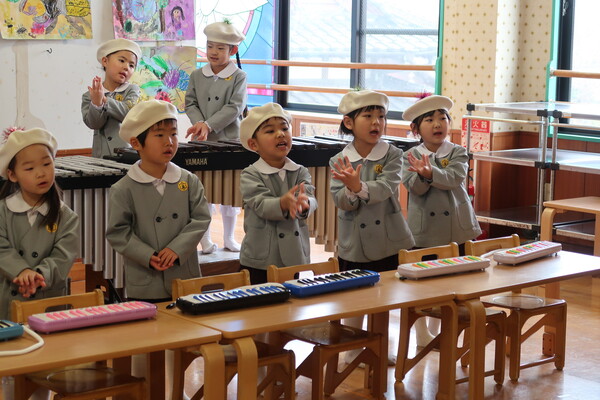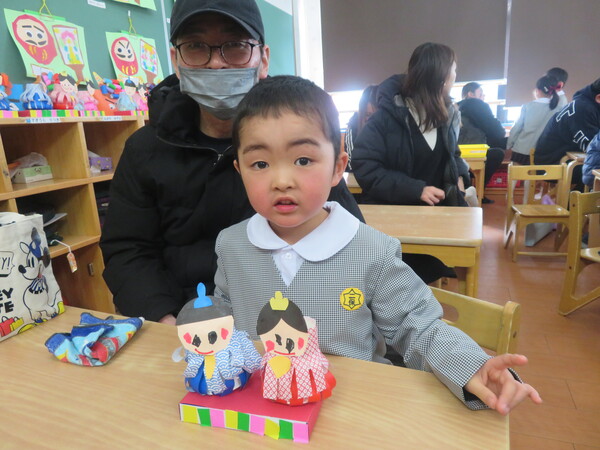 今回の保育参観では、歌と合奏の発表、保護者の方とお雛様製作をしました!