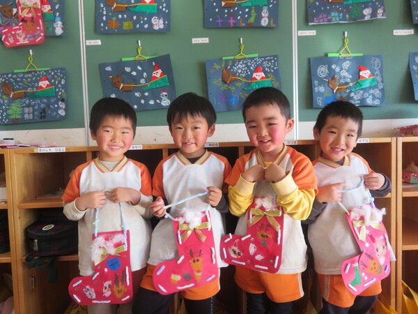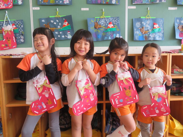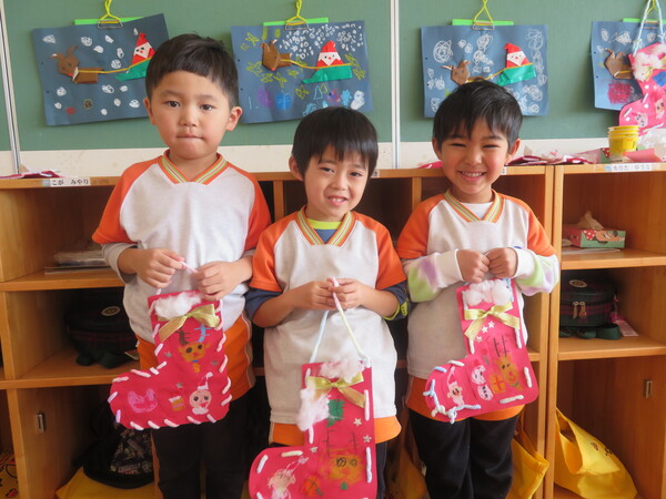 「サンタさんできた!」と一つ一つ出来上がるたびに、笑顔いっぱいになった子どもたち!おうちに持って帰る日をずーっと心待ちにしていましたよ。
