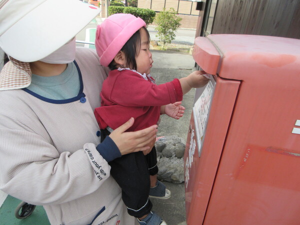 みんなでポストまで行き、1人ずつ大切に投函しました。子ども達の思いがしっかり届いていたら嬉しいです。