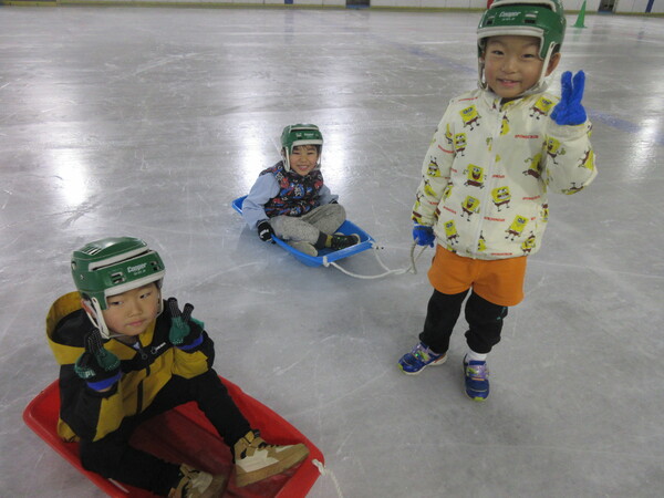 転んでは立ってを繰り返し滑れるようになったり、最後にはそり遊びをしたりと、