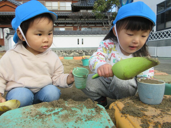 季節もやっと冬らしくなり、園庭の池に張った氷や、冷たい風に、冬を感じている子ども達です。